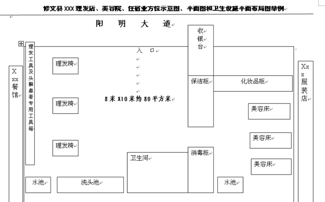 公共场所地址方位示意图、平面图和卫生设施平面布置图。