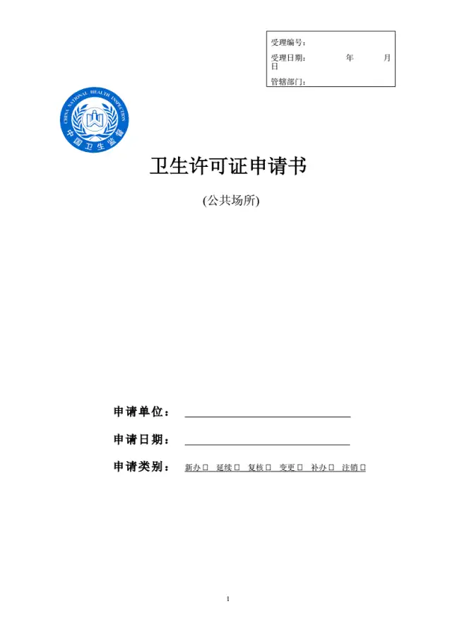 1、公共场所卫生许可申请表